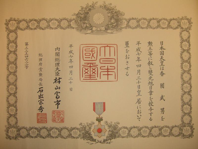 二代目「香園武男」は一男と松代の長男として大正12年に生まれる。佐賀県武雄市で勤務医として従事し、第二次大戦が終結し終戦後の福岡県北九州市八幡東区枝光本町にて昭和23年「香園歯科医院」を再開する。